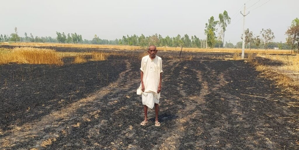 थाना असंद्रा क्षेत्र के सुख देव प्रसाद द्विवेदी वुजुर्ग आयु लगभग 80 वर्षीय पुत्र स्व. माता प्रसाद निवासी ममरखा पुर विकास क्षेत्र सिद्धऔर तहसील हैदर गढ़ जनपद बाराबंकी की गेहूं की फसल गाटा संख्या 80 अ व 80 ब रकवा लगभग साढ़े 9 बीघे गेहूं की फ़सल जलकर राख हो गई । आज 7 अप्रैल दिन सोमवार समय दिन के लगभग 10 बजकर 50मिनट को हाई टेंशन की बिजली चालित लाईन के नीचे शार्ट शर्किट से या फिर अज्ञात कारणों से आग लगने से गेहूं जलकर चंद पल में राख हो गया। गेहूं के मोटे-मोटे चमकते गेहूं के दाने जलकर राख के रूप में परिवर्तित हो गये। जानकारी मिलते ही थाना क्षेत्र असंद्रा की डायल 112 पुलिस थाना असंद्रा अंतर्गत पुलिस चौकी सिद्धधौर से भी पुलिस पहुंची। परन्तु फायर ब्रिगेड हैदर गढ़ का वाहन दमकल भी नहीं पहुंच सका घंटी घनघनाते रहें किसी नें फोन नहीं उठाया। तब तक मेराज अली ऋषि द्विवेदी,अवधेश कुमार द्विवेदी, शिवम – छोटू, रानू अवस्थी, अभय, रवि,सुशील, महक, नैतिक समेत सैकड़ों ग्रामीण एकत्रित होकर आग पर काबू पायें।गांव निवासी धीरज ,सोनू , राजेश , अमन , सहित सैकड़ों लोग एकत्रित होकर बाल्टी में पानी भर कर आग को काबू किया पीड़िता अरुन- संगीता देवी,रंजना देवी ने बताया कि हम घर में कुछ काम कर रहे थे तभी हमारें बच्चे पानी के लिए नल टंकी के पास गयें थे तभी हमारी देवरानी रंजना की नजर इस भयानक आग पर पड़ी और हम संगीता देवी किसान मुखिया सुख देव प्रसाद जोर जोर से चीखने चिल्लानें लगे जब तक ग्रामीण एकत्रित हुए और आग पर काबू किया।तब तक करीब साढ़े नौ बीघा मेरा तैयार गेहूं की खड़ी फसल धू धू जलकर चंद पल में राख हो गया ।जिसके कारण इस वर्ष हमारे घर में खेत का तनिक भी एक भी दाना नहीं जाएगा।