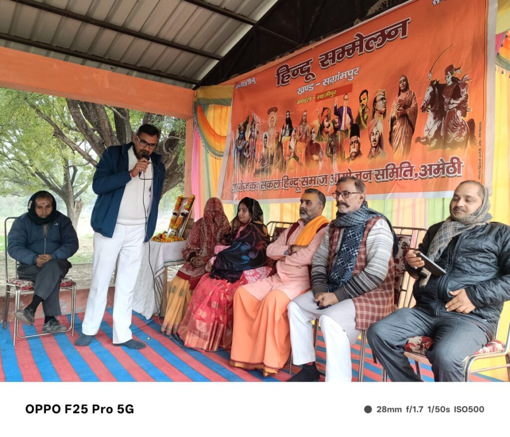 अमेठी । राष्ट्रीय स्वयं सेवक संघ के तत्वाधान में हिंदू सम्मेलन संपन्न हुआ। पीठाधीश्वर कालिकान धाम श्री महराज/श्री प्रकाश जी रहे मुख्य अतिथि! अध्यक्षता सदाशिव पांडेय एडवोकेट के हिस्से में रही! कार्यक्रम का संयोजन एडवोकेट विनोद पांडेय ,और सह संयोजन प्रवीन यादव जी ने किया! पूरे कार्यक्रम में अपने बेहतरीन और तथ्यात्मक प्रमाणों के साथ विचारों को रखते हुए देव प्रकाश पांडेय ने समां बांधते हुए किया संचालन का कार्य! एक और जहां श्री महराज जी ने हिंदुओं से एक होने की अपील की,और हर हिंदू को माथे पर तिलक लगाने को आवश्यक बताया,साथ ही खड़े होकर भोजन करने को पशुवत कहा!वहीं दूसरी ओर श्री देव प्रकाश पांडेय ने हिंदुओं को एक करने के तरीके बताते हुए कहा कि किसी भी हिन्दू की बेटी के विवाह में निमंत्रण न भी हो तो भी हर हिंदू को जाना चाहिए! किसी भी हिन्दू की मृत्यु होती है,तो छोटी जाति का होने के नाते बड़ी जाति वाले उसके द्वार संवेदना व्यक्त करने न जाएं,यह कदापि न करें।