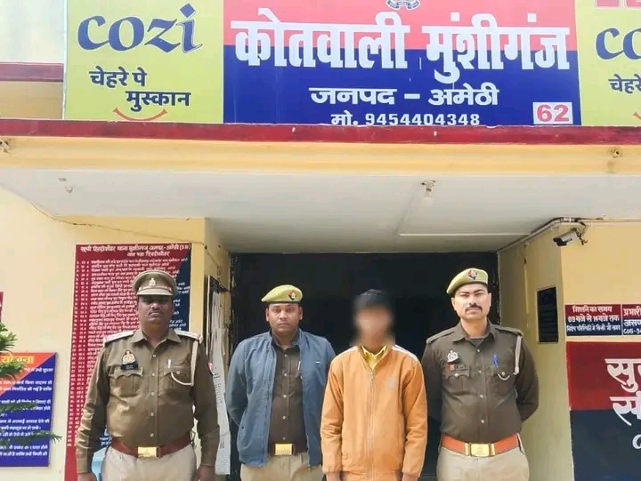 जनपद अमेठी में अपराध एवं अपराधियों के धर पकड़ हेतु चलाये जा रहे अभियान के क्रम में दिनांक 02.01.2024 को उ0नि0 सुरेश कुमार मय हमराह द्वारा तलाश वांछित, देखभाल क्षेत्र व चेकिंग संदिग्ध व्यक्ति, वस्तु, वाहन के दौरान मुखबिर की सूचना पर मु0अ0सं0 232/23 धारा 363,366,376 भादवि व ¾ पाक्सो एक्ट थाना मुंशीगंज जनपद अमेठी में वांछित अभियुक्त शनि सरोज पुत्र श्रीराम सरोज नि0 ग्राम चन्दौकी थाना मुंशीगंज जनपद अमेठी उम्र करीब 19 वर्ष को उलरा मोड़ चन्दौकी के पास से समय करीब 11:10 बजे दिन में गिरफ्तार किया गया है । थाना मुंशीगंज पुलिस द्वारा विधिक कार्यवाही की जा रही है ।