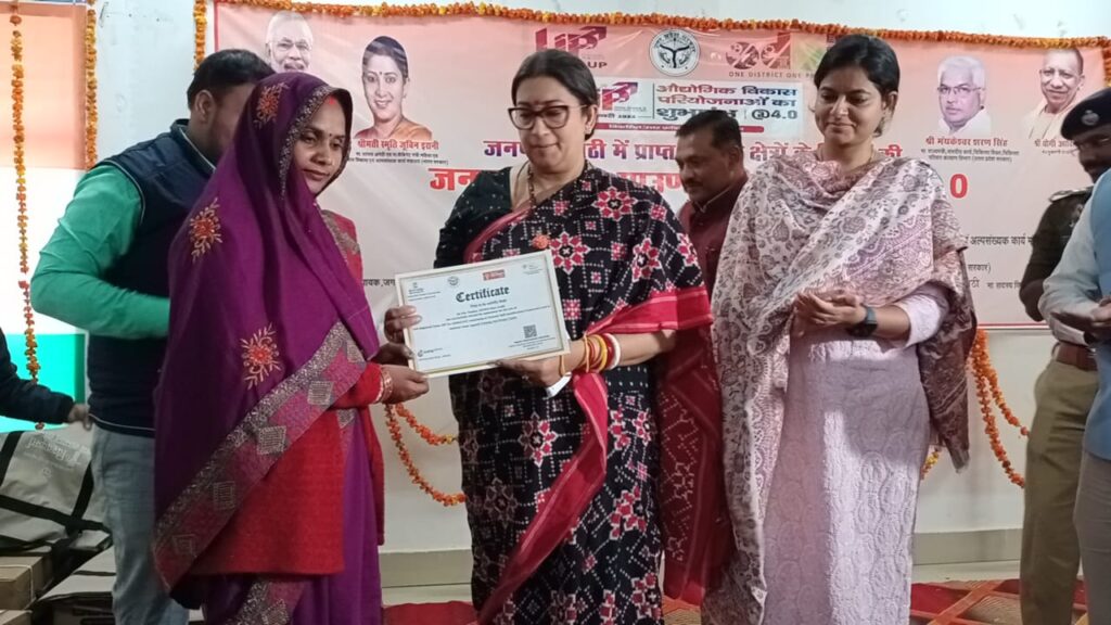 कार्यक्रम का केंद्रीय मंत्री महिला एवं बाल विकास और अल्पसंख्यक कल्याण मंत्रालय भारत सरकार वा अमेठी से सांसद स्मृति जुबिन इरानी द्वारा फीता काटकर व दीप प्रज्वलित कर किया गया । इसके पश्चात अनेक विभागों यथा उद्योग , दुग्ध , राष्ट्रीय ग्रामीण आजीविका मिशन , स्वयं सहायता समूह , बैंक , स्वास्थ्य आदि विभागों द्वारा लगाई गई प्रदर्शनी का अवलोकन किया गया। कार्यक्रम के दौरान लखनऊ के इंदिरा गांधी प्रतिष्ठान में आयोजित उत्तर प्रदेश ग्राउंड ब्रेकिंग सेरेमनी @4.0 का शुभारंभ मा. प्रधानमंत्री द्वारा बटन दबाकर किया गया। कार्यक्रम का सजीव प्रसारण डीपीआरसी गौरीगंज में किया गया। जिसे केंद्रीय मंत्री, जिला पंचायत अध्यक्ष राजेश अग्रहरी , जिलाधिकारी निशा अनंत , पुलिस अधीक्षक डॉ इलामारन , मुख्य विकास अधिकारी सूरज पटेल सहित उद्यमियों, व्यापारियों ने देखा और सुना। इस अवसर पर केंद्रीय मंत्री ने कहा कि उत्तर प्रदेश में छोटी इकाइयों में व्यवसाय की क्षमता बढ़ाने का कार्य किया गया है। बिजनेस इन्वेस्टमेंट में केवल अमेठी में 6523 करोड़ के 162 प्रोजेक्ट पर निवेश हुआ है। उन्होंने बताया कि कोको कोला का प्लांट अमेठी में स्थापित है जो कि एशिया का सबसे बड़ा प्लांट है उन्होंने कहा कि अमेठी में विगत 10 वर्षों में 2000 करोड़ से ज्यादा का निवेश लघु उद्योगों में हो पाया है। उन्होंने कहा कि स्वयं सहायता समूह के अंतर्गत अमेठी में विगत दो वर्षों में 8 हजार लखपति दीदी बनी है। उन्होंने बताया कि अमेठी में राइफल फैक्ट्री को मिलाकर 11000 करोड़ का निवेश हुआ है । जिससे 20000 लोगों को रोजगार मिला है । अमेठी वासियों के 30 साल के बाईपास के सपने को भी पूरा किया गया है। अमेठी को एक्सप्रेसवे से जोड़ा गया है। उन्होंने उन्होंने कहा कि आगामी दिनों में कोका-कोला का प्लांट विश्व में 15 सबसे बड़े प्लांट में शामिल होगा। इस दौरान केंद्रीय मंत्री ने निवेशकों को धन्यवाद दिया। ग्राउंड ब्रेकिंग सेरेमनी कार्यक्रम के दौरान केंद्रीय मंत्री ने विश्वकर्मा श्रम सम्मान योजना अंतर्गत 10 लाभार्थियों क्रमशः वंदना , कुसुम , मनीषा , अंजलि पाल , ममता , अर्चना , कविता , सुमन पाल , मुस्कान सिंह व कंचन देवी को सिलाई मशीन तथा प्रमाण पत्र वितरित किया तथा मुख्यमंत्री युवा स्वरोजगार योजना अंतर्गत एक लाभार्थी गोपाल गुप्ता को रुपए 25 लाख का डेमो चेक वितरित किया। इसके अलावा उन्होंने सात उद्यमियों को शील्ड व अंगवस्त्र देकर सम्मानित किया। इस अवसर पर उपायुक्त उद्योग दिनेश कुमार चौरसिया ने बताया कि जनपद अमेठी में जीबीसी हेतु 162 निवेशकों द्वारा 6523 करोड़ का निवेश/प्रस्ताव प्राप्त हुआ है जिसमें 15138 लोगों को रोजगार देना निहित है। जिसमें से 52 निवेसकों जिनका पूंजी निवेश रुपए 10 करोड़ या 