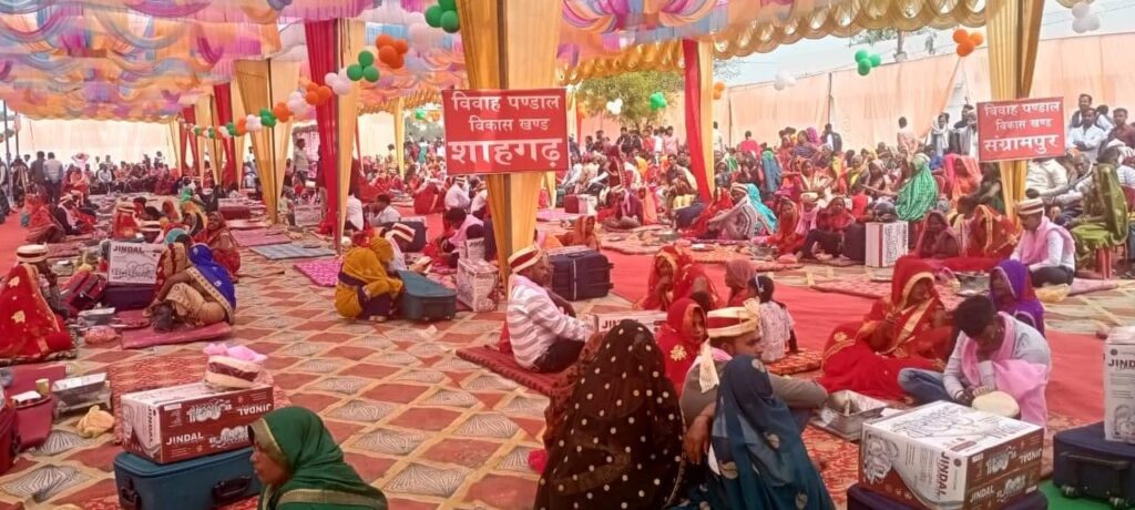 *अमेठी।* आज मुख्यमंत्री सामूहिक विवाह योजना के तहत जनपद में पीयूष उत्सव वाटिका (मैरिज लॉन) निकट राजीव गांधी साइंस कालेज, गौरीगंज में मुख्यमंत्री सामूहिक विवाह कार्यक्रम का आयोजन किया गया, जिसमें कुल 328 जोड़ों का सामूहिक विवाह कराया गया। जिला समाज कल्याण अधिकारी आरके शर्मा ने बताया कि आज 07 विकास खंडों क्रमशः भेटुआ, अमेठी, भादर, संग्रामपुर, गौरीगंज, जामों व शाहगढ़ 328 जोड़ों का सामूहिक विवाह कराया गया, जिसमें 293 हिंदू तथा 35 जोड़ों का मुस्लिम रीति-रिवाज से विवाह संपन्न कराया गया। उन्होंने बताया कि उक्त कार्यक्रम के दौरान अध्यक्ष जिला पंचायत राजेश अग्रहरि, पूर्व विधायक चन्द्र प्रकाश मिश्र, जिला पंचायत सदस्य बब्लू सिंह, मुख्य विकास अधिकारी सूरज पटेल, अपर जिलाधिकारी(न्यायिक), उपजिलाधिकारी गौरीगंज, क्षेत्राधिकारी गौरीगंज, खण्ड विकास अधिकारी अमेठी, भेटुआ, भादर, संग्रामपुर व गौरीगंज तथा प्रबन्धक पीयूष उत्सव वाटिका अनूप पाण्डेय सहित अन्य जनप्रतिधि उपस्थित रहे।